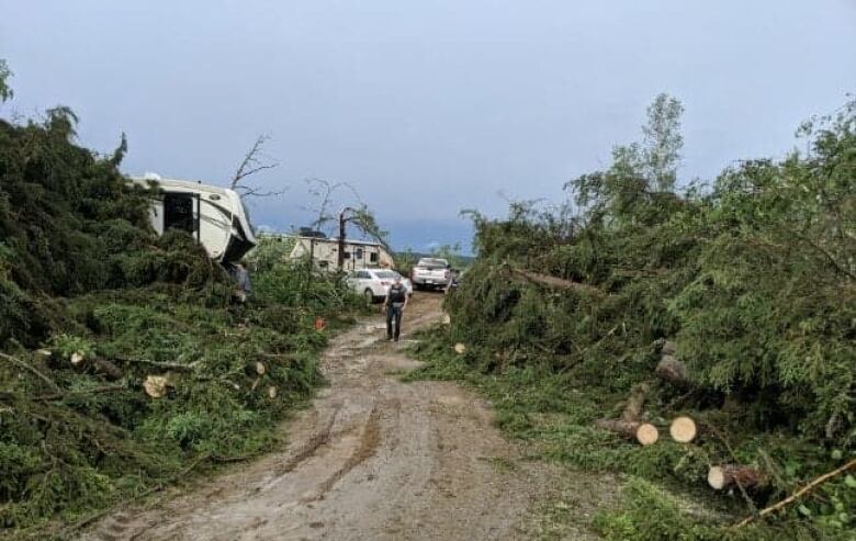 Barry Butler, który przebywał w Laumans Landing Area, powiedział, że widział przewrócone i zmiażdżone przyczepy w następstwie tornada.
