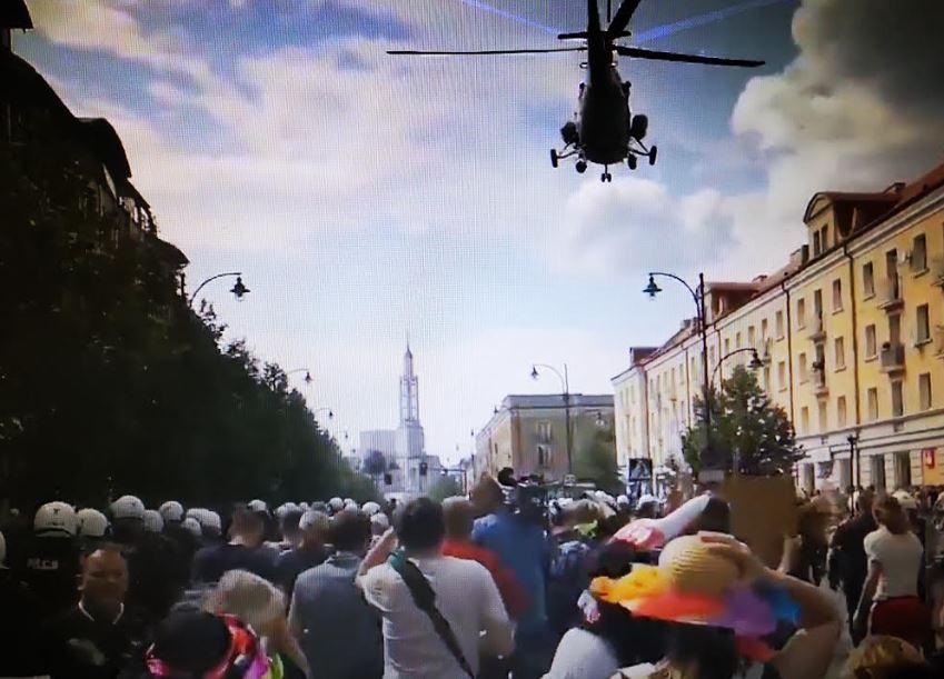 Idących zwolenników ideologii LGBT “ochraniał” śmigłowiec Straży Granicznej