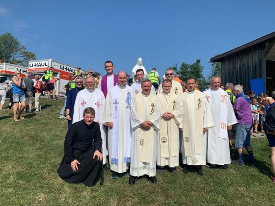 Mszę św. koncelebrowali: o. Wojciech Stangel OMI z Brampton – odpowiedzialny za duchowy aspekt pieszej pielgrzymki z ramienia Konferencji Polskich Księży; idący w tegorocznej pielgrzymce o. Wojciech Kurzydło OMI – proboszcz Parafii św. Kazimierza, o. Paweł Pilarczyk OMI z Parafii św. Maksymiliana Kolbe, ks. Adam Słomiński SChr z Parafii Matki Bożej Królowej Polski z Scarborough, ks. Sławomir Szwagrzyk z Whitehorse – Yukon, ks. Adam Wróblewicz, proboszcz Parafii św. Józefa w Brantford. Byli również obecni o. Józef Wcisło OMI, rektor WSD w Obrze, ks. prof. Norbert Pikuła z Częstochowy, o. Piotr Nowak OMI oraz kleryk Jonasz Lalik OMI. W pielgrzymce idą też s. Karolina Szymkowiak, Misjonarka Chrystusa Króla oraz s. Lidia Stępień, służebniczka.