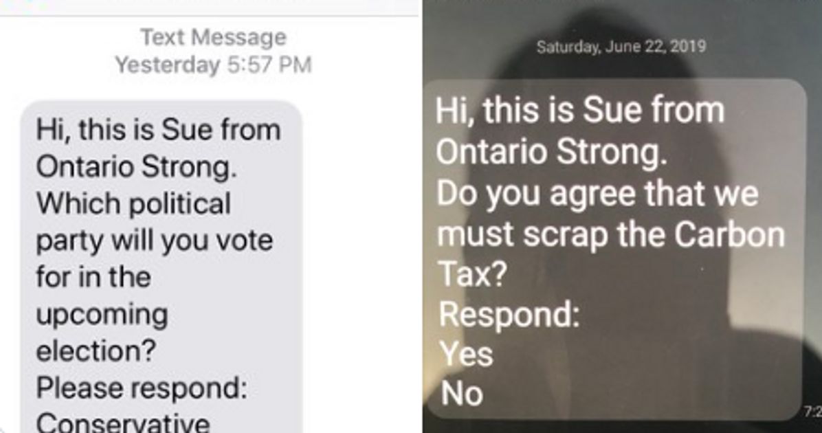 W czerwcu posłanka liberalna Pam Damoff, podobnie jak wielu ontaryjczyków, dostała sms-a wysłanego z nieznanego numeru zaczynającego się od zdania „Cześć, tu Sue z Ontario Strong”, z pytaniem, na jaką partię zamierza głosować w październiku. Damoff pytała potem na twitterze, skąd ta Sue ma jej numer i w ogóle co to za twór to Ontario Strong”.