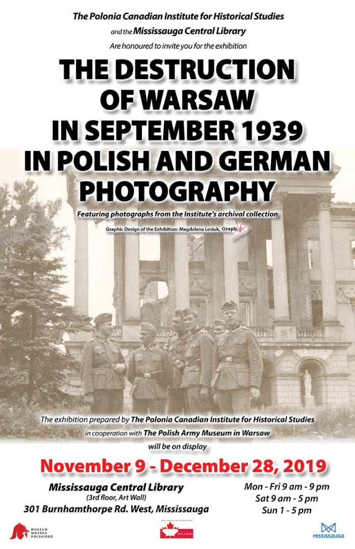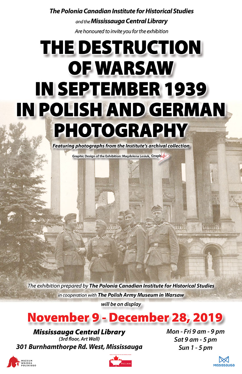 Polonia Canadian Institute for Historical Studies i Mississauga Central Library zapraszają do zwiedzania wystawy planszowej zatytułowanej Zniszczenia Warszawy we Wrześniu ’39 w Fotografii Polskiej i Niemieckiej.