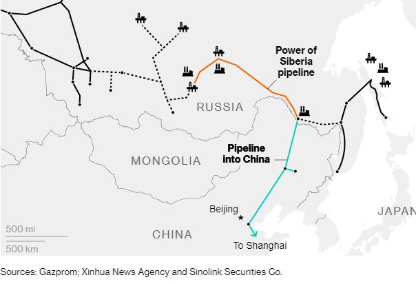 Połączenie stało się symbolem zwrotu prezydenta Władimira Putina w kierunku szybko rozwijających się gospodarek Azji, w czasie gdy pogarszają się stosunki z Zachodem. Rurociąg biegnący z olbrzymich pól gazowych Rosji we wschodniej Syberii ostatecznie będzie miał 3000 kilometrów długości i pomoże zaspokoić ogromne i wciąż rosnące potrzeby energetyczne Chin.