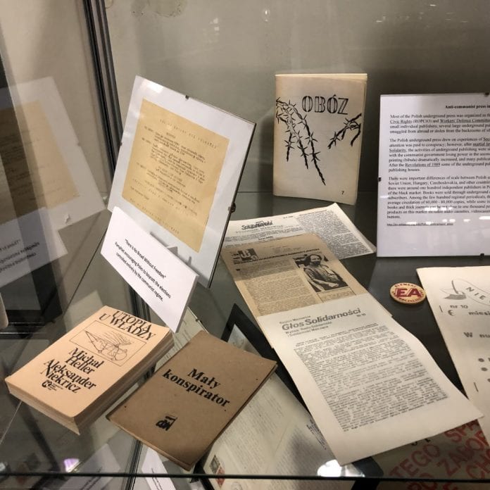 Wybór archiwalnych dokumentów, ulotek, fotografii, plakatów oraz prasy i wydawnictw drugiego obiegu z lat 1980 – 1989, pochodzących ze zbiorów instytutu, prezentowany jest w wystawowych gablotach znajdujących się na trzecim piętrze obok Canadiana Reading Room.
