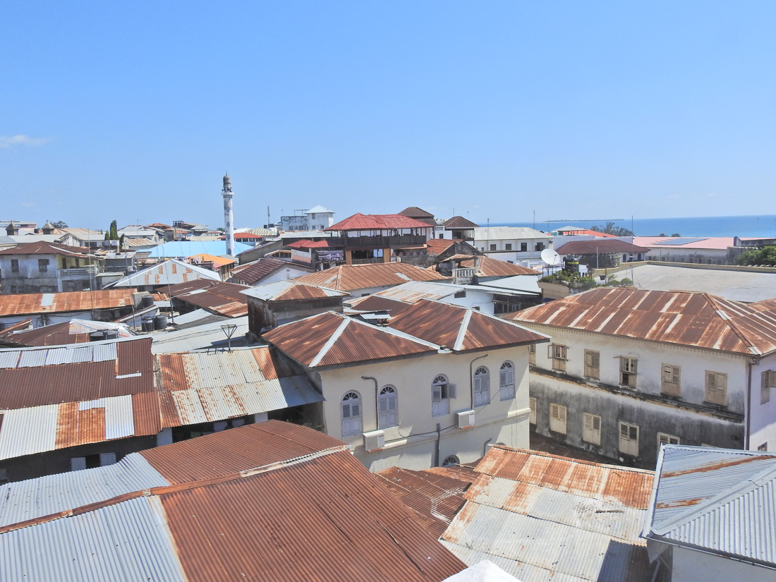 Teraz dopiero odkrywamy, że dachy Stone Town są na ogół zrobione z czerwonej dachówki, tak jak w wielu miejscach na świecie. Widzimy kościół anglikański, widzimy minaret, ale widzimy też palmy nad brzegiem Oceanu Indyjskiego i zaczynamy sobie uświadamiać, gdzie teraz jesteśmy, bo czujemy w sobie oddech tego oceanu, który jest zupełnie inny niż inne morza i oceany.