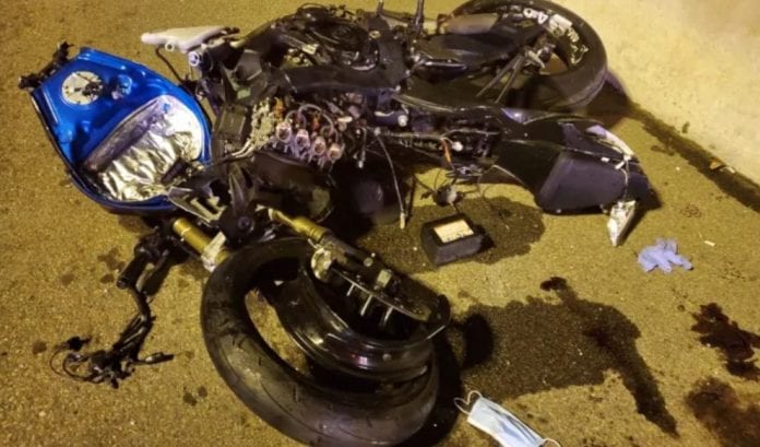 „Ten pojazd może być uszkodzony, naszym zdaniem mercedes prawdopodobnie ścigał się z motocyklem”.