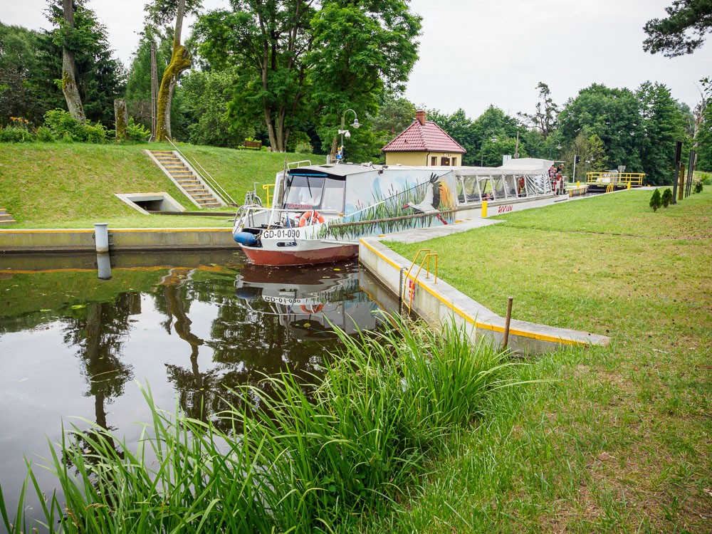Omijamy tym samym największą atrakcję kanału, jaką są uznawane za zabytek techniki i ewenement na skalę europejską pochylnie służące do transportu statków. Statki na specjalnych platformach wciągane są po szynach, a całe urządzenie napędza siła przepływu wody. Zostawiamy sobie pochylnie na dłuższy urlop.