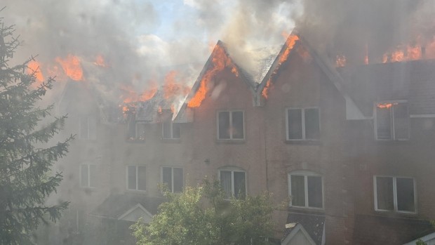 Strażacy wieczorem nadal walczyli z ogromnym pożarem, który wybuchł w kompleksie szeregowców w Richmond Hill w niedzielne popołudnie.
