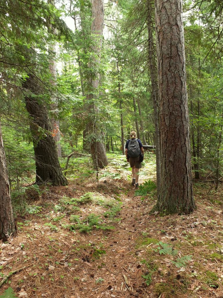Dwadzieścia parę kilometrów na północ od Elliot Lake znajduje się Mississagi Provincial Park, cel naszej podróży. W mieście próbowaliśmy kupić mapę, bo Ontario Parks informowało na swoich stronach, że sklepik w parku z powodu koronawirusa nie sprzedaje map, co okazało się nieprawdą. Pan w informacji turystycznej dziwił się, po co płacimy za kemping w parku, kiedy wokół tyle ziemi koronnej, dzicz absolutna, można rozbić namiot, gdzie dusza zapragnie, co potwierdzały tablice po drodze, że tylko rezydenci Kanady bezpłatnie mogą z niej korzystać.