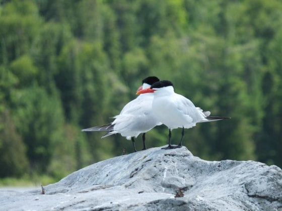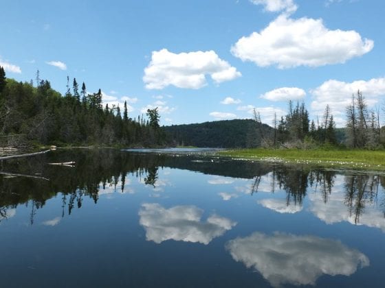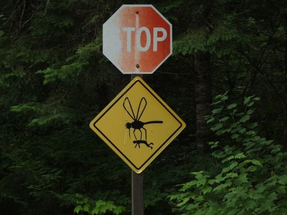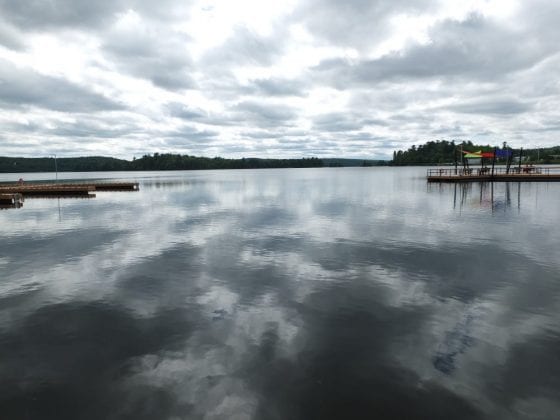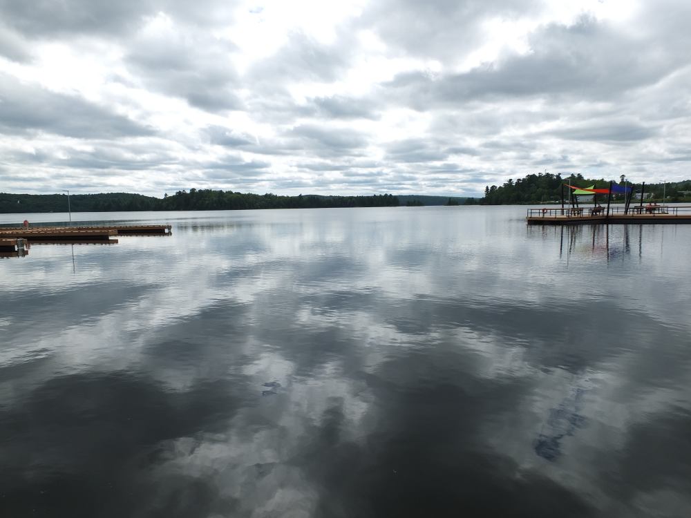 W Mississagi powitał nas dowcipny znak drogowy z wielkim komarem porywającym ludzi. Komary nie były jednak uciążliwe, park niewielki, trafiło nam się przepiękne miejsce nad samym jeziorem, jedno z czterech oddalonych od głównego kempingu (polecamy miejsce nr 1). Cisza, wszechobecna niesamowita cisza w dzień, z rzadka przerywana głosem spuszczanych na wodę łodzi, to pierwsze wrażenie. I noc głośna od kumkań gigantycznych żab, wydających straszliwy dźwięk podobny może do odgłosu zepsutych resorów w samochodzie. Odwrotnie niż w mieście, gdzie cisza zapada w nocy. Minusem jest brak pryszniców, są tylko sławojki z bieżącą wodą w zlewie.