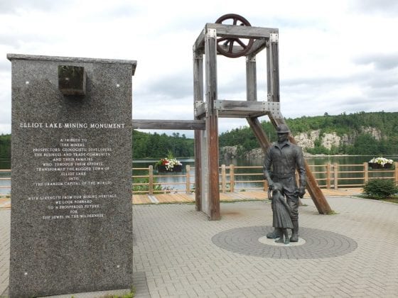 Zwiedziliśmy miasto, wjechaliśmy na wzgórze, na którym kiedyś stała obserwacyjna wieża przeciwpożarowa, jedna z trzystu w Ontario, zbudowanych po wielkim pożarze w 1916 roku, który strawił kilka miejscowości i pochłonął 244 życia. Teraz jest tu platforma widokowa, z której rozciąga się przepiękna panorama miasta, okolicznych wzgórz i jezior. Widać stąd nawet North Chanel jeziora Huron i wyspę Manitoulin. Minimuzeum górnictwa w domku strażaka obok platformy było zamknięte z powodu koronawirusa, ale widać, że miasto postawiło na turystykę i ślady uranowej przeszłości starannie zaciera. Okazałe muzeum uranu i górnictwa w centrum miasta zostało zamknięte, miejsce odkrycia uranu jest oznaczone niewielką tablicą i takimż obeliskiem, a pomnik przy głównej drodze w Elliot Lake upamiętniający górniczą przeszłość miasta podaje nazwy kopalń i tony wydobytej rudy, pomijając słowo uran. Na długiej liście górników, którzy stracili życie w kopalni lub ulegli trwałemu kalectwu, znaleźliśmy niestety polskie nazwiska.