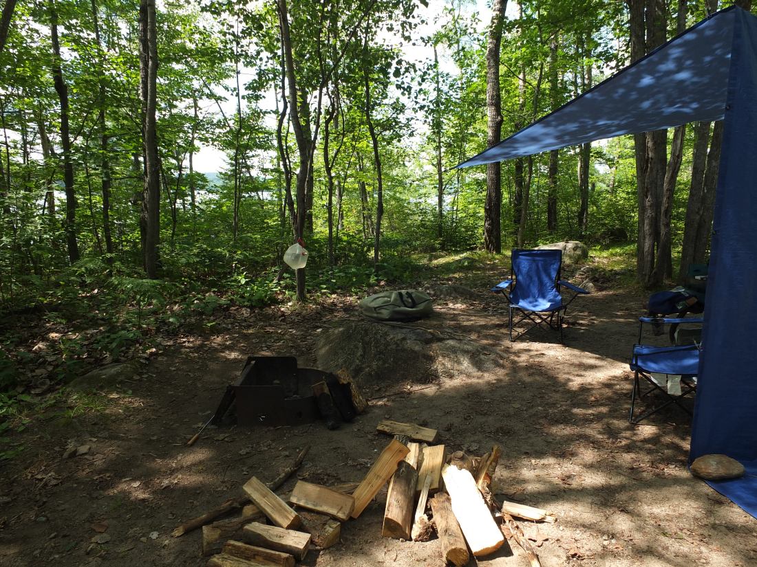 Kemping w parku jest niewielki, kilkanaście zelektryfikowanych miejsc w lesie i 60 położonych w większości nad brzegiem rzeki. Miejsca są bardzo blisko siebie, nie zapewniają prywatności, ale rekompensują to bezpośredni dostęp do dużych piaszczystych plaż, klarowna woda, panorama na dolinę rzeki Ottawa i piękne góry Laurentyny oraz zapierające dech w piersiach zachody słońca.