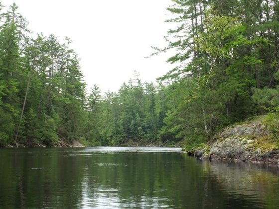 Dumoine to niedługa rzeka, ma zaledwie 130 kilometrów. Wokół niej Quebec utworzył park prowincyjny o tej samej nazwie. Nie ma tu domków letniskowych, nie ma ośrodków wypoczynkowych, jedynie parę chat myśliwskich, nie ma tam i elektrowni wodnych, nie ma Internetu. O bardzo dawnej przeszłości, kiedy rzeką wędrowali handlarze futer, a potem spławiano nią wycinaną puszczę, przypomina jedynie kilkadziesiąt par butów przybitych do drzew za pierwszym wodospadem upamiętniających potopionych drwali. Prawie też nie ma tu ludzi, bo spływ rzeką wymaga umiejętności. Wolne, nietknięte ludzką ręką wody Dumoine przedzierają się przez Laurentyny w kierunku Ottawa River szybkim, górskim nurtem, tworząc 39 bystrz i wodospadów. Te najtrudniejsze mają nazwy, niektóre mrożące krew w żyłach, jak np. “Pożeracz canoe”.