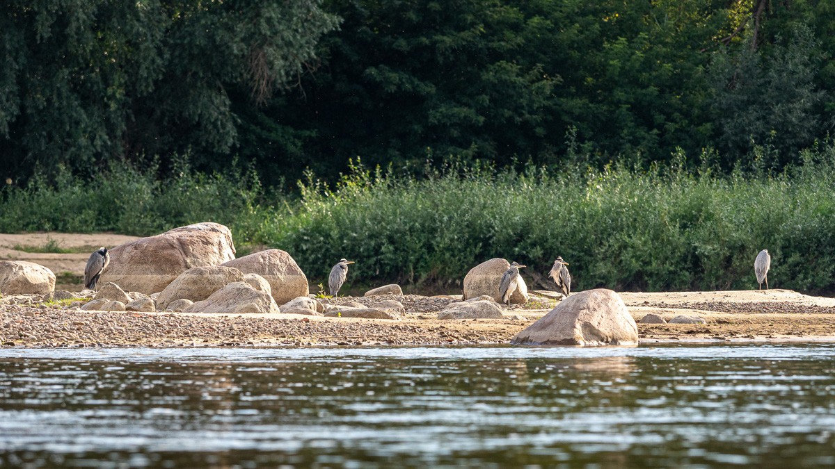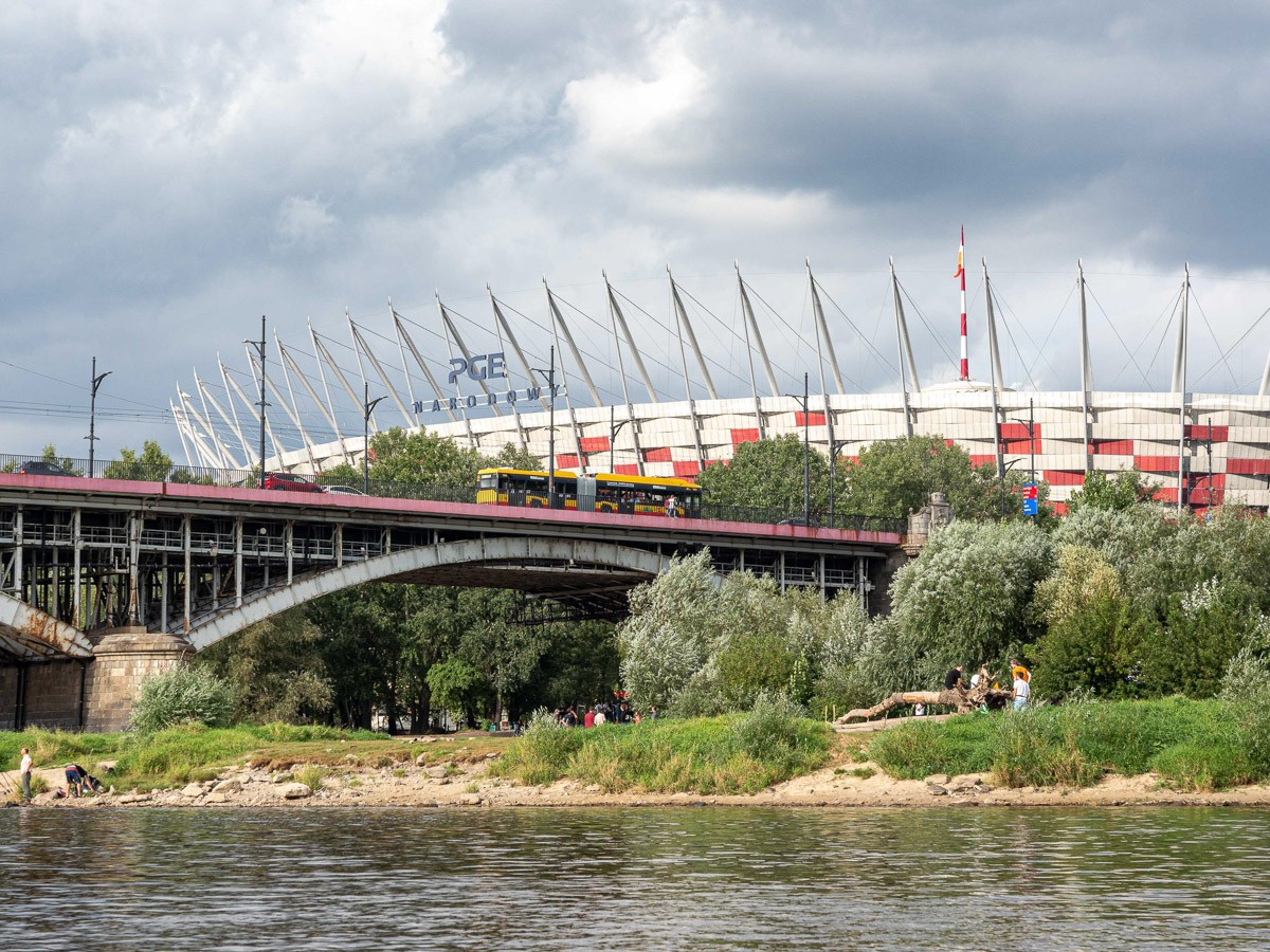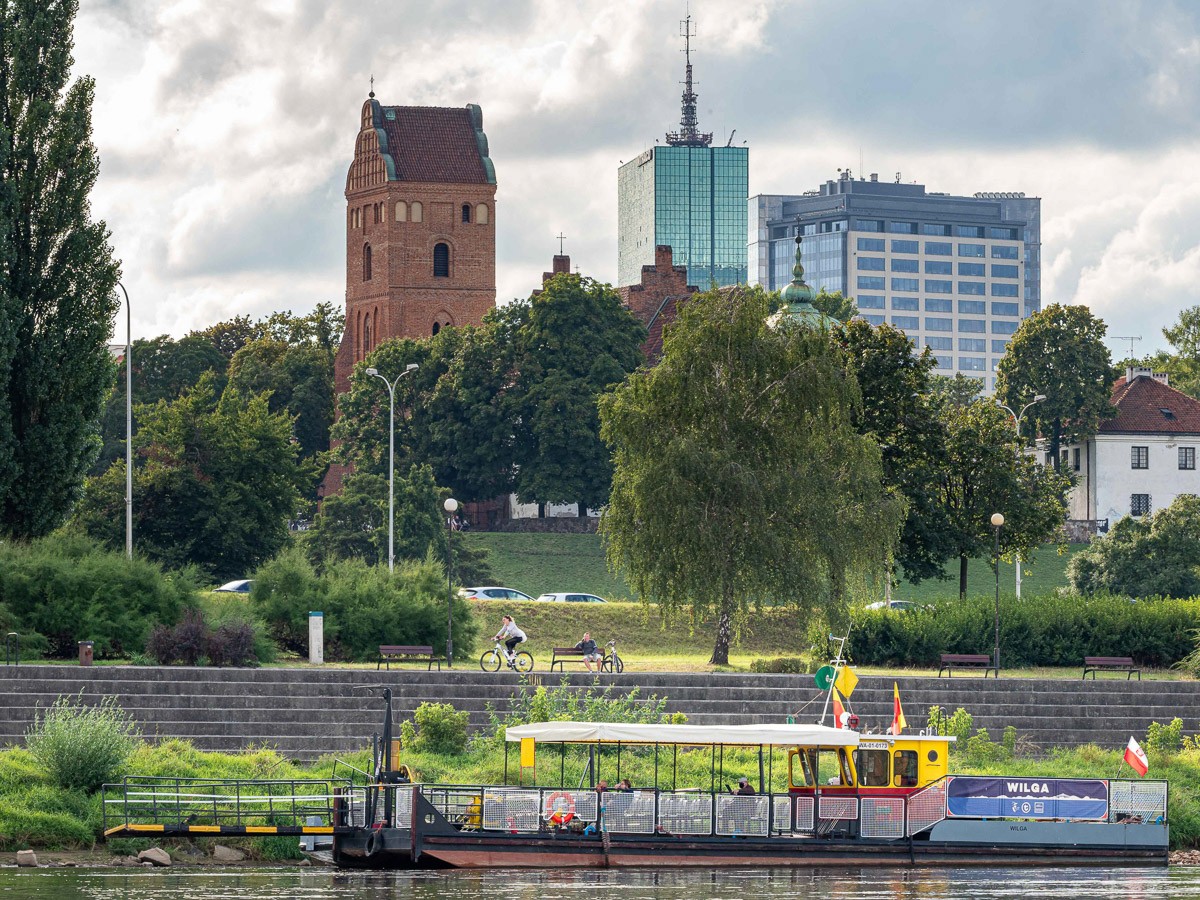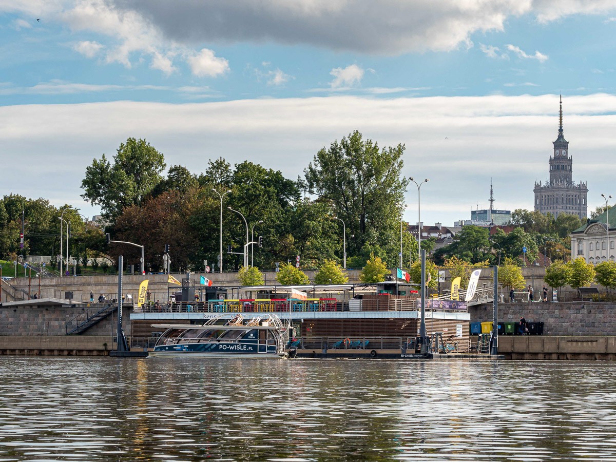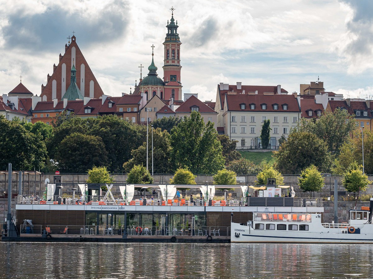 Ruszyliśmy z plaży na Saskiej Kępie, niedaleko Mostu Łazienkowskiego. Na początku czuliśmy się jak na jeziorze – Wisła gładka jak stół, płynęła sobie powoli. Nawet bez problemu dało się zawracać, żeby zrobić zdjęcia. Był stadion na prawym brzegu, różne rodzaje środków transortu publicznego sunące po kolejnych mostach, statki wycieczkowe, barki poprzerabiane na restauracje, pchające się na siebie kamieniczki na Starym Mieście i wznosząca się nad nimi katedra św. Jana Chrzciciela, mój ulubiony zielony Most Gdański z kręconymi schodami, za którym na horyzoncie pojawiła się elektrociepłownia Żerań. I wtedy Wisła zaczęła nas zaskakiwać. Zrobiło się jakby bardziej dziko, mewy i rybitwy krążyły nad wodą, a na coraz częściej wystających kamieniach przysiadały kormorany i czaple. W jednym miejscu poczuliśmy się jak na jakiejś górskiej rzece, gdy nurt przyspieszył i zaczęliśmy podskakiwać na falach. Za Kanałem Żerańskim znów zrobiło się leniwie, i tak już pozostało do mety – na Przystani Młociny.
