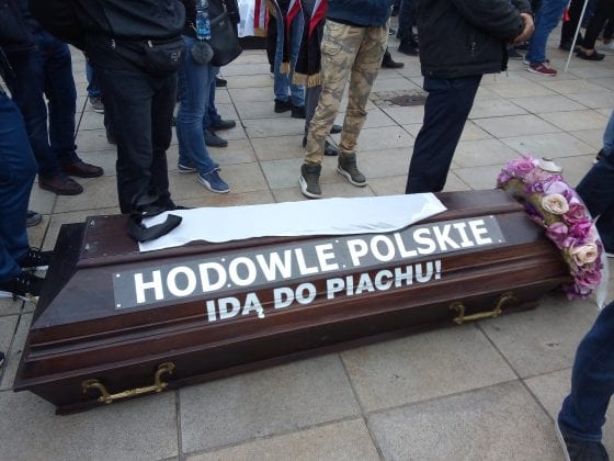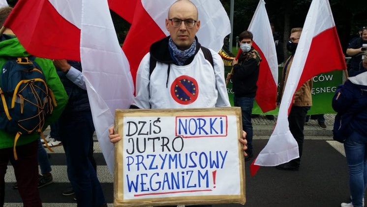 Od 10 rano w środę na ulicach Warszawy demonstrowało pod setkami biało-czerwonych flag kilkanaście tysięcy polskich rolników. Sprzeciwiali się oni likwidacji polskiego rolnictwa przeprowadzanej przez PiS ustawą o norkach, która przewiduje zniszczenie setek tysięcy miejsc pracy w rolnictwie i przemyśle spożywczym wynikających z zakazu produkcji na eksport mięsa halal i koszer.