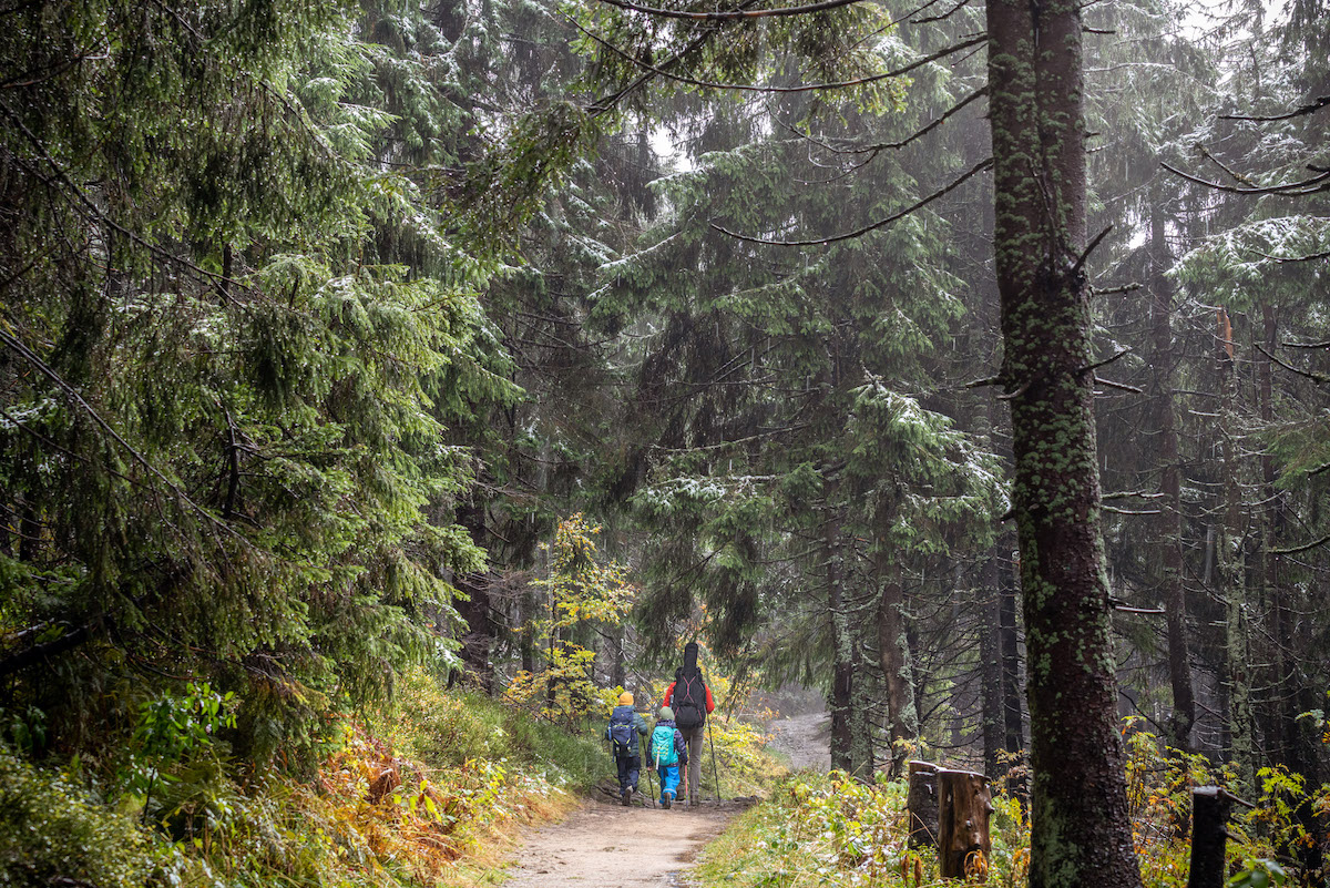 O, nie tylko wiatr – również śnieg. Nawet dało się lepić kulki. A następnego dnia wyszło słońce i Tatry na horyzoncie wystawały ponad chmury.