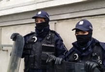 Nie do końca pokojowy protest przed posterunkiem policji w Peel
