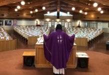 Grimsby: ksiądz przykleił zdjęcia parafian do ławek, łącząc się z nimi podczas Mszy św....