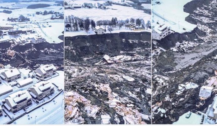 Teren osuwiska w Ask to ruiny domów w półstałej masie gliny. Z ziemi wystają fragmenty mebli oraz części samochodów. “Poszukiwania nie są pozbawione ryzyka. Nie wiemy, czy stąpamy po gruncie” – stwierdził Kenneth Wangen ze straży pożarnej.