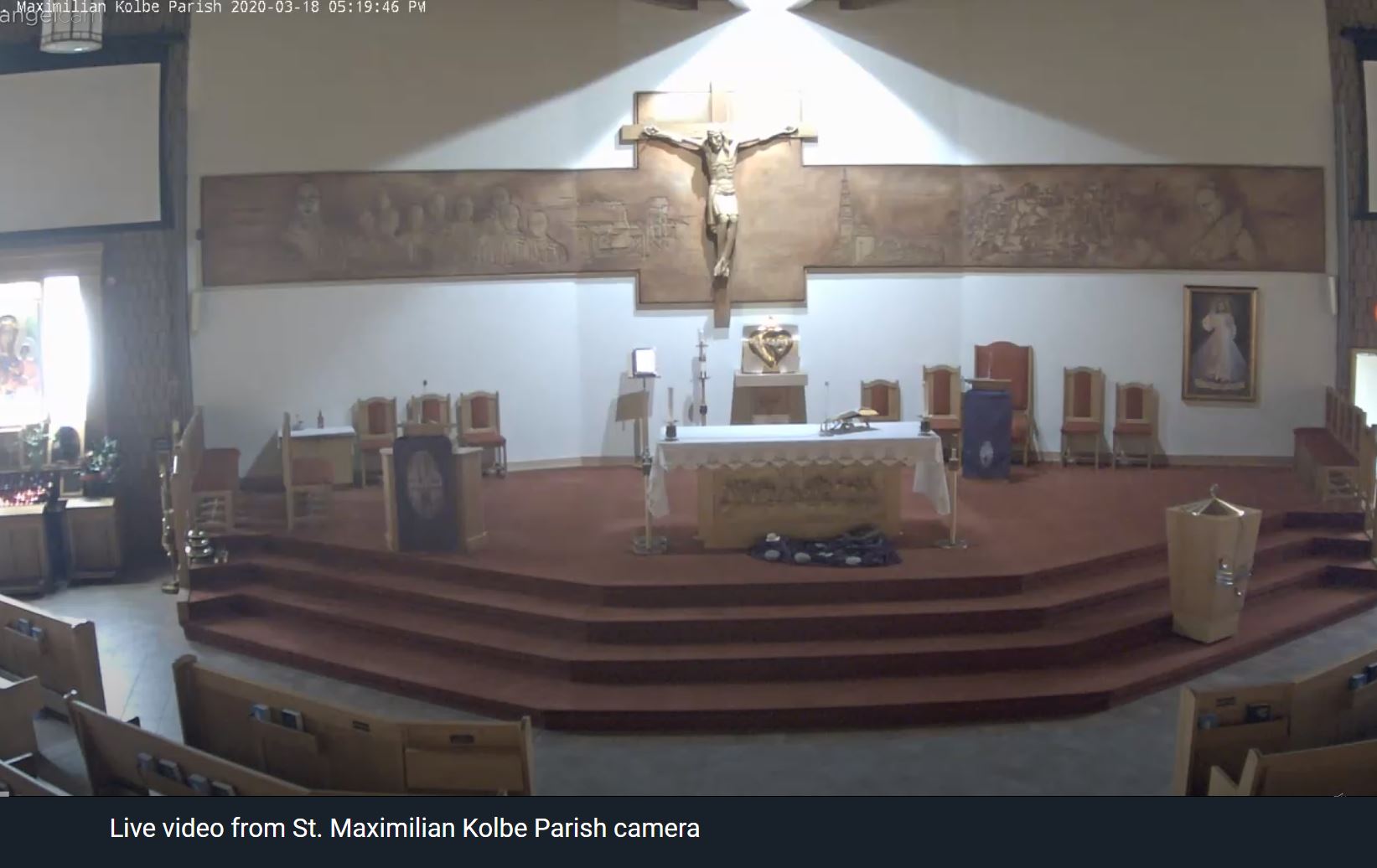 w Parafii św. Maksymiliana w Mississauga podczas celebrowanej Mszy Św. – Kościół pozostaje zamknięty – a liturgie sprawowane w/g stałego , codziennego wieczorno-porannego harmonogramu – bez udziału wiernych – są transmitowane on line.