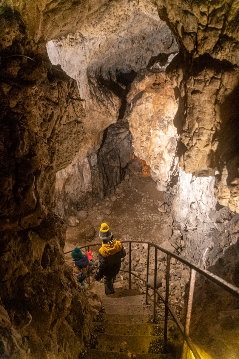 Sobotę zaczęliśmy od wizyty w jaskini Wierzchowskiej Górnej w Dolinie Kluczwody. Byliśmy jedynymi chętnymi na tę atrakcję. Pani przewodniczka przeprowadziła nas przez kilkaset metrów korytarzy i kilka większych sal. Podglądaliśmy śpiące nietoperze – a taka możliwość nie zawsze się zdarza. Niektóre jaskinie właśnie ze względu na nietoperze zimą nie są dostępne (żeby się zwierzaki nie budziły, jak przez turystów w jaskini zrobi się cieplej).