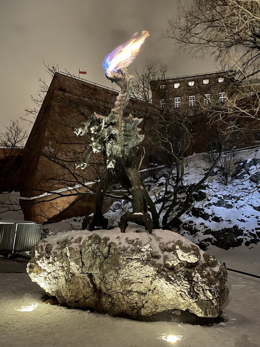 Wieczorem jeszcze odbyliśmy spacer po krakowskiej starówce, uczestniczyliśmy we Mszy św. w kościele Mariackim i patrzyliśmy, jak smok zionie ogniem (jako dziecko balam się tego ziania).