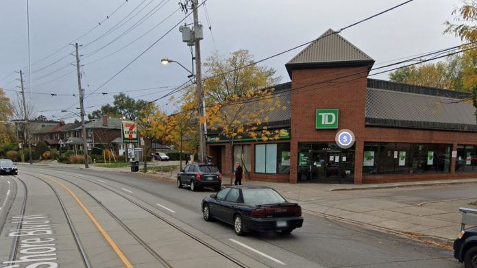 Funkcjonariusze zostali wezwani na miejsce zdarzenia w Lake Shore Boulevard West i Allen Avenue gdzie około godziny 19:00 w piątek zgłoszono napad na bank.