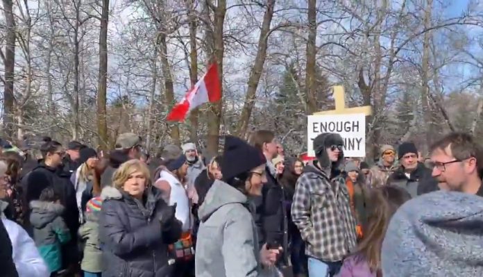 Setki ludzi demonstrowało w niedzielę przed zamkniętym kościołem protestanckim GraceLife na zachód od Edmonton.