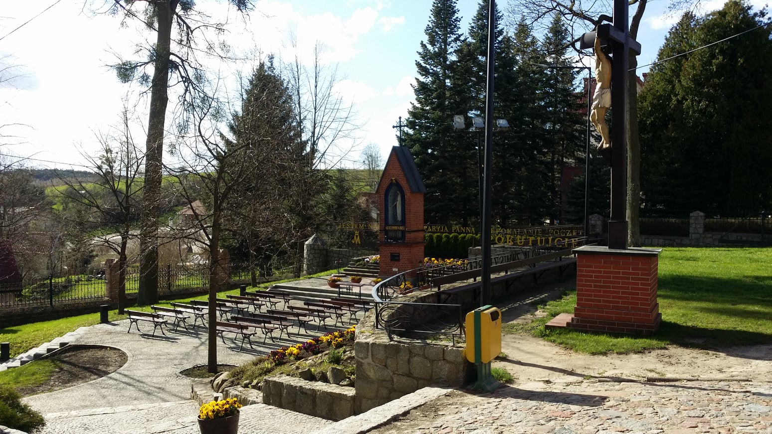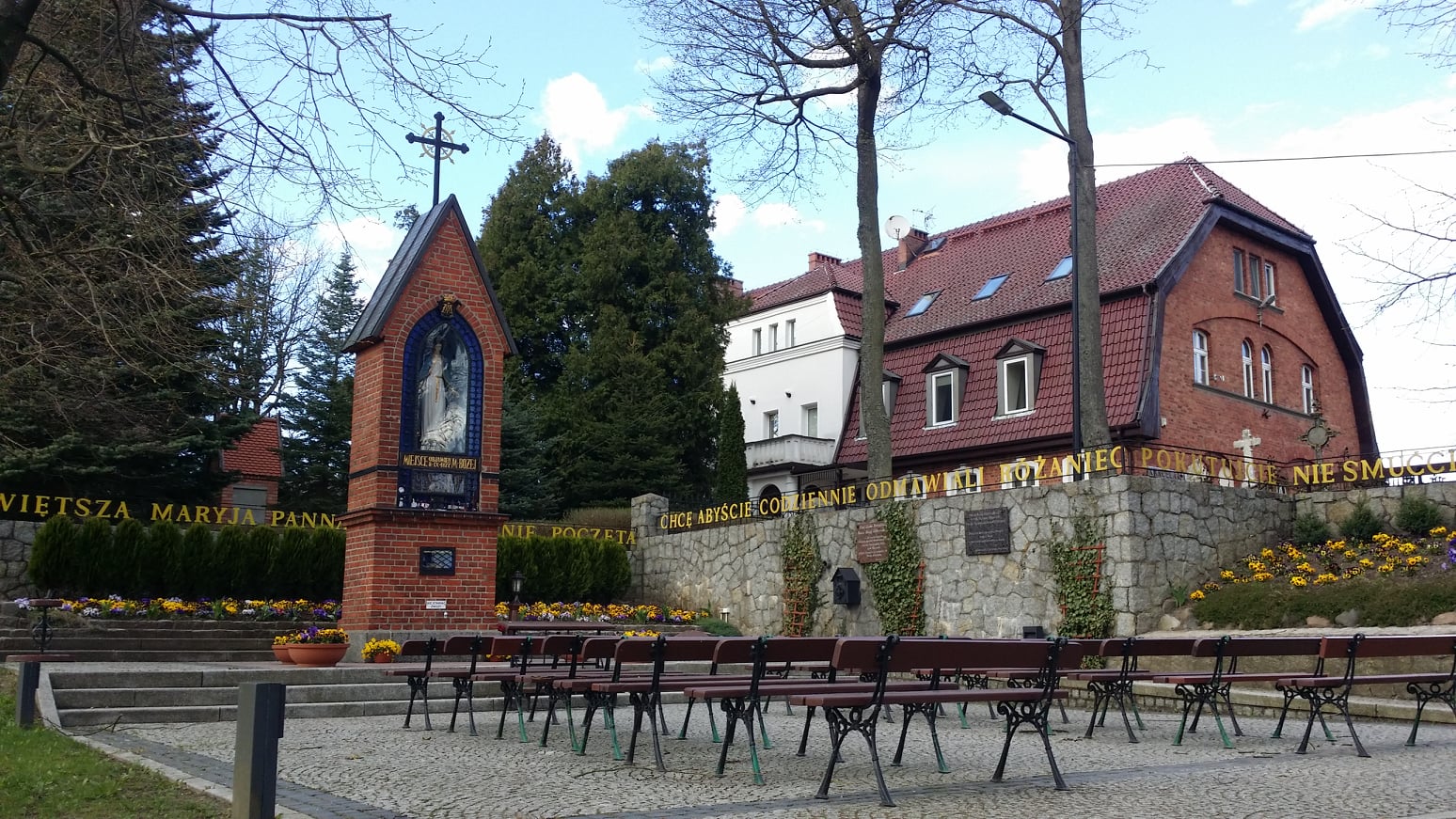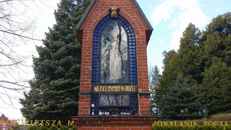 Dziś piękny kościół, przed którym objawiła się Matka Boska, jest bazyliką. W miejscu objawień przed kościołem jest kapliczka, a w niej jest kawałek drzewa, na którym objawiła się Matka Boska. Obok kapliczki zaznaczone jest miejsce, gdzie stało drzewo. Sanktuarium stanowi nie tylko gotycki kościół rozbudowany w stylu neogotyckim, piękne budynki (w których jest kilka instytucji z noclegami, kilka lokali gastronomicznych i kilka sklepików), ale znajdujące się za świątynią na wzgórzu: droga krzyżowa, droga różańcowa i źródełko z wodą, która uzdrowiła już wielu pielgrzymów. Dziś, zapewne przed ”pandemią” tętniące życiem sanktuarium, jest opustoszałe. Warto przełamać strach i na przekór postępującej laicyzacji pielgrzymować do miejsca jedynych uznanych przez Kościół katolicki objawień w Polsce.
