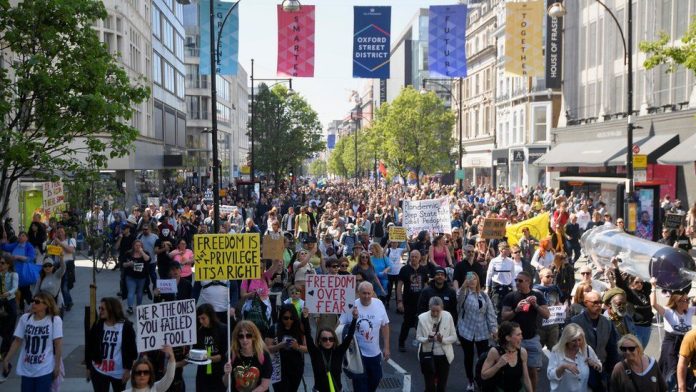 Jednak nareszcie ludzie się budzą z kowidowego odurzenia. W ostatnią sobotę w Londynie miała miejsce demonstracja pod hasłem Wolność, szacowana na 100 tysięcy osób. Organizatorzy się nie ujawniają, wiadomo, kiedy taki protest się zaczyna, ale nie gdzie i jaka jest trasa.