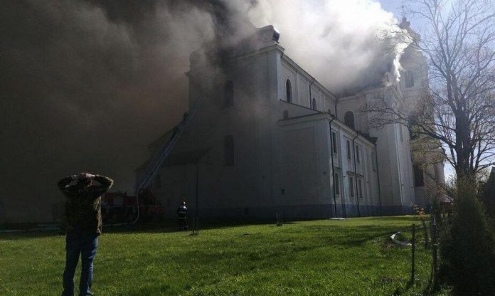 Strażacy walczą z pożarem w sanktuarium Matki Boskiej Budsławskiej. Wolontariusze ratują obrazy.
