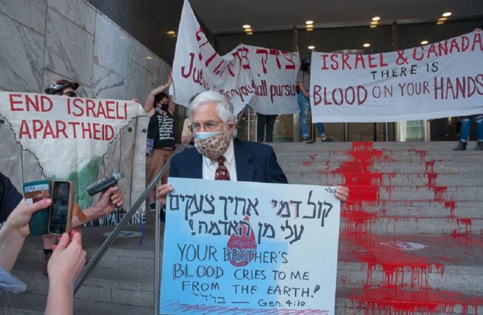 Rabin z Toronto został oskarżony przez policję po tym, jak pomógł zorganizować protest, w wyniku którego schody izraelskiego konsulatu w Toronto zostały pomalowane na czerwono.