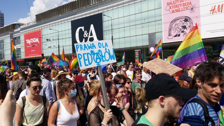 Wśród tysięcy uczestników tęczowej parady dostrzegłem dwu libertarian (choć miał być blok liberałów i libertarian) i kilka flag Unii Europejskie. Widać, że Anty PiS (PO czy nowa forma PO zwana Hołownia) olali Paradę Równości, może wychodząc z założenia, że ich elektorat składa się też z homofobów. Może też sami tęczowi nie chcieli ich obecności. Jedynym politykiem anty PiS na paradzie był prezydent Warszawy Trzaskowski. Co niezwykłe na paradzie pojawili się działacze Nowoczesnej z dwoma swoimi flagami – choć myślałem, że partia ta nie istnieje.