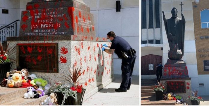 W weekend zniszczono pomnik św. Jana Pawła II stojący przed polskim kościołem katolickim Różańca Świętego  w Edmonton. Jest to jeden  z ostatnich aktów wandalizmu wymierzonych w kościoły katolickie po odkryciu setek nieoznakowanych grobów na terenie dwóch dawnych szkół z internatami prowadzonych przez Kościół w ramach rządowego programu asymilacji.