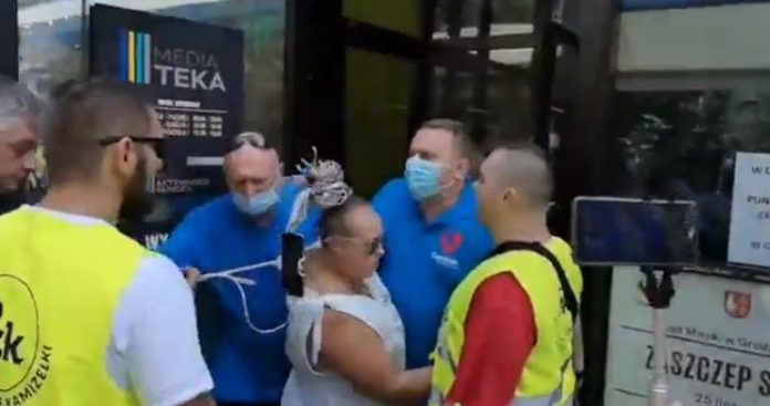 Grodzisk Mazowiecki – banda antyszczepionkowców atakuje punkt szczepień.