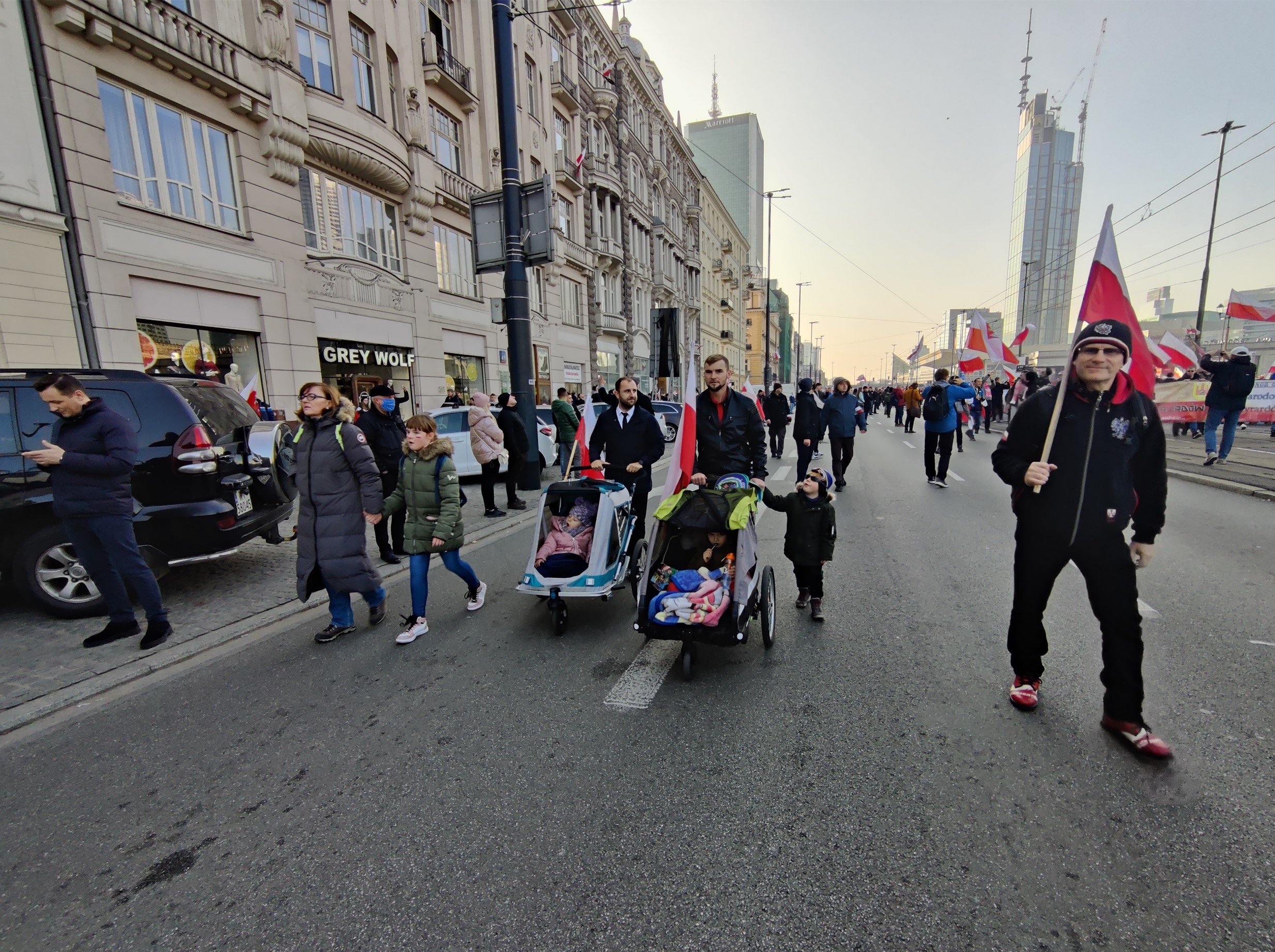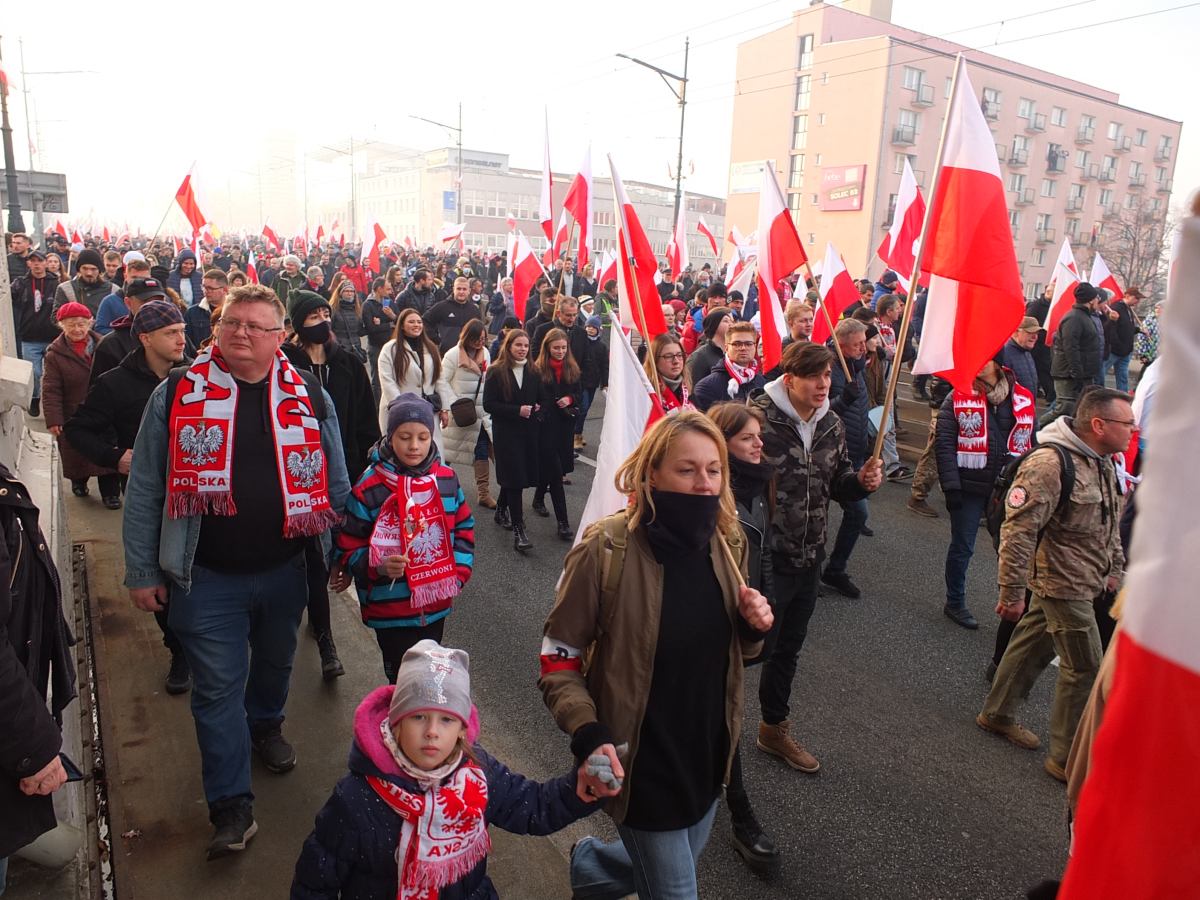 Nasz przemarsz odnosił się też do wydarzeń bieżących, a szczególnie do wojny hybrydowej, którą naszej drogiej Ojczyźnie wypowiedzieli sąsiedzi ze wschodu. Decydenci z Mińska i Moskwy do tej pory wiedzieli, że natrafią na opór stawiany przez nasze służby mundurowe, które powołane są do ochrony granic. 11 listopada wysyłamy mocny sygnał, że funkcjonariusze nie działają w próżni i mogą liczyć na pełne wsparcie ze strony społeczeństwa. Agresja zewnętrzna wymaga konsolidacji narodu. Cichnąć powinny wtedy wewnętrzne spory, a Polacy powinni tworzyć monolit, skałę, o którą rozbiją się napierające szeregi wroga. Daliście Państwo dzisiaj przykład takiej jedności! Apeluję jednak: „Ducha nie gaście!”. Nadszedł czas próby i jeżeli chcemy zachować niepodległe państwo polskie, każdy z nas powinien dołożyć do tego cegiełkę.