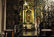 W północnej części transeptu, wydzielonej z części kościoła, a oddzielonej XVII-wieczną metalową kratą (wysokość kraty ok. 3,5 m) znajduje się kaplica Cudownego Krzyża. Cudownego,...