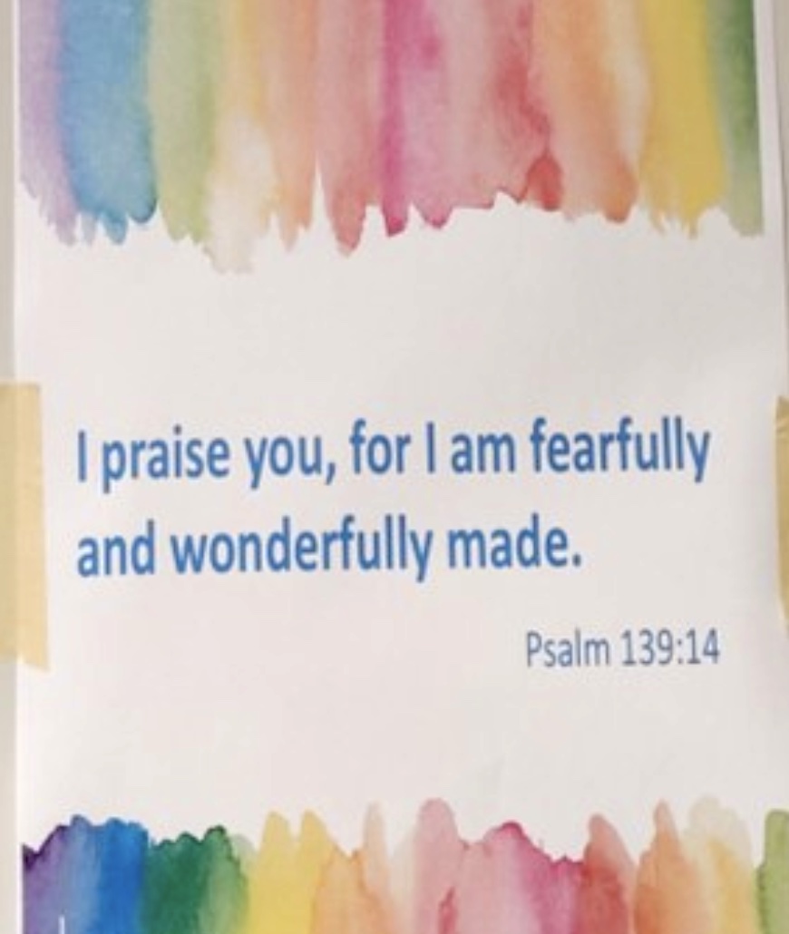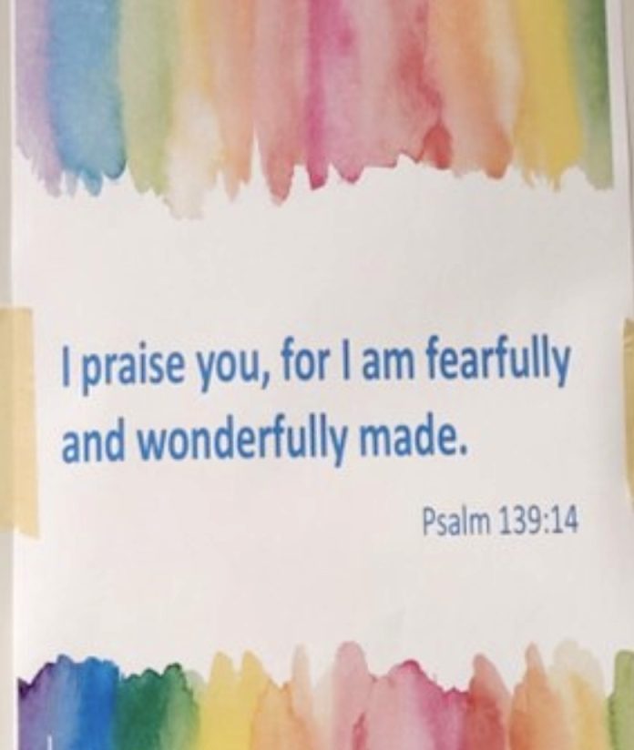 Jest więc plakat z fragmentem Psalmu 139: „Dziękuję Ci, że mnie stworzyłeś tak cudownie” na tle kolorów tęczy. Na innym wymieniono różne „fobie” i „-izmy”, m.in. „transfobię”, „homofobię” i „kolonializm”. Pod spodem znalazło się stwierdzenie, że sprawiedliwość wymaga, by je nazywać. Dalej pojawia się cytat z nauczania Papieża Franciszka o tym, że musimy zwalczać wszelkie formy rasizmu, nietolerancji i instrumentalnego traktowania istoty ludzkiej. Na kolejnym plakacie napisane jest, że „jesteś przyjmowany, słyszany, szanowany, ważny, kochany i święty”.