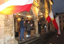 Spotkaliśmy się na Rynku Głównym (Cathedral Square) w Peterborough. Pieśni: Bogurodzica, Święty Boże, Pieśń Konfederatów Barskich, Rota. Po przemówieniach przemarsz przez miasto do Zatopionych...