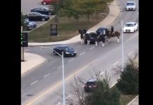 Torontońska policja konna w akcji na Sherway Gardens gdzie w pi'tek trzech mężczyzn próbowało obrabować inną osobę na parkingu. Policjanci galopem ruszyli by zatrzymać...