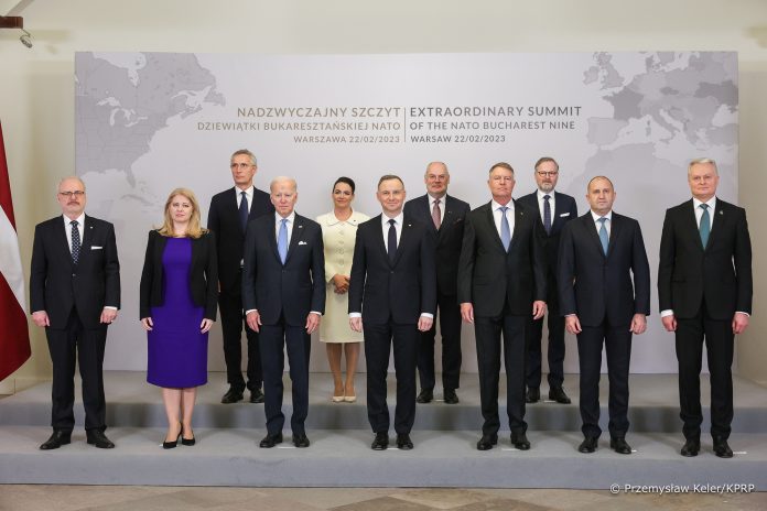 My, Szefowie Państw i Rządów Bułgarii, Czech, Estonii, Węgier, Litwy, Łotwy, Polski, Rumunii i Słowacji spotkaliśmy się dzisiaj, rok po rozpoczęciu przez Rosję niesprowokowanej i brutalnej agresji na Ukrainę. Z zadowoleniem witamy Prezydenta Stanów Zjednoczonych i Sekretarza Generalnego NATO, których obecność na naszym spotkaniu jest świadectwem siły naszych transatlantyckich więzi i podkreśla niezachwiane zobowiązanie NATO do obrony każdego centymetra terytorium Sojuszu.