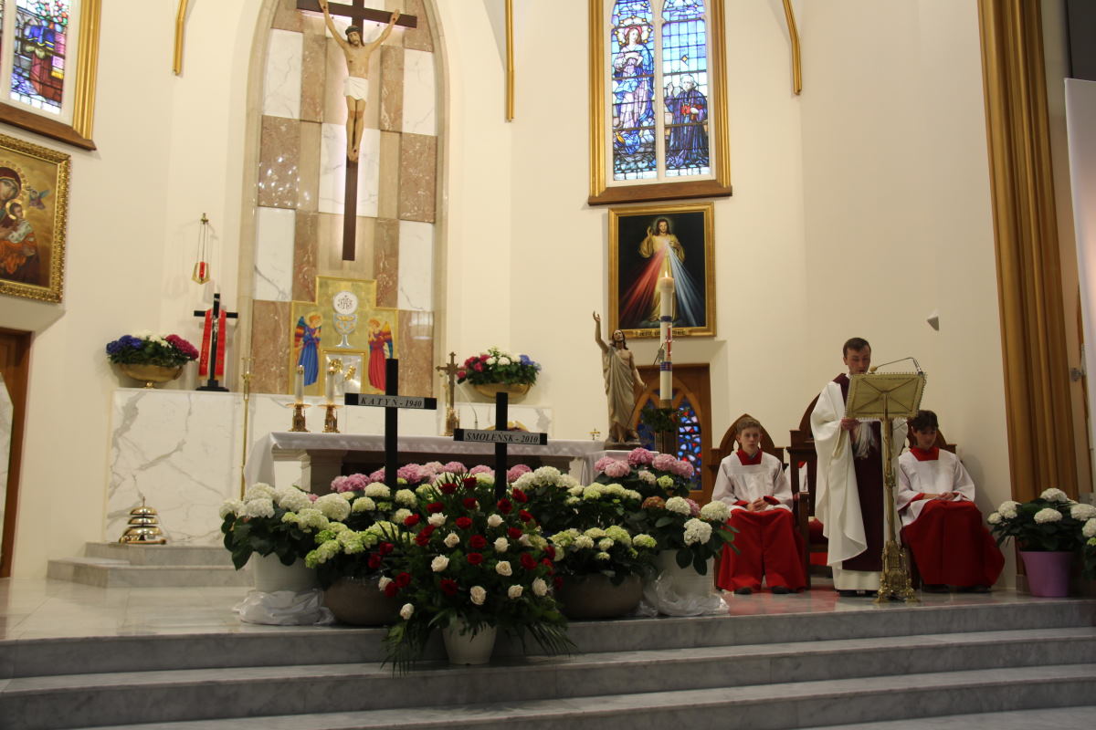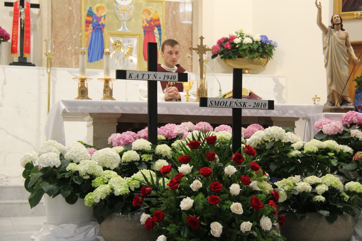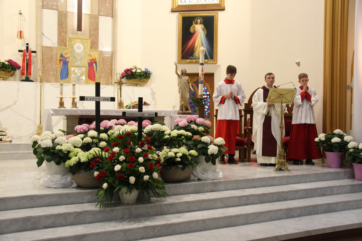 Upamiętnienie Ofiar Katynia i Smoleńska rozpoczęło się od uroczystej Mszy Św. w kościele Św. Kazimierza w niedzielę 16 kwietnia 2023 o godz.11:00, którą odprawił O. Zbigniew Halemba OMI