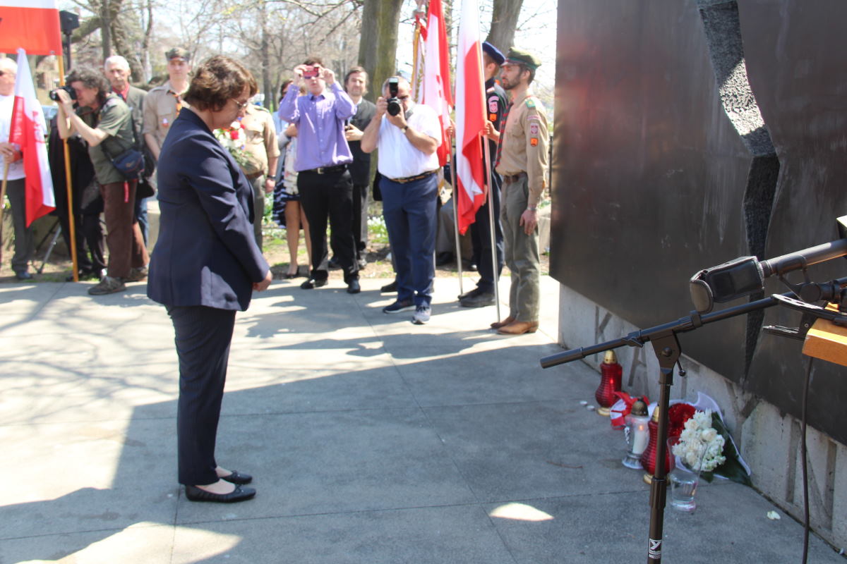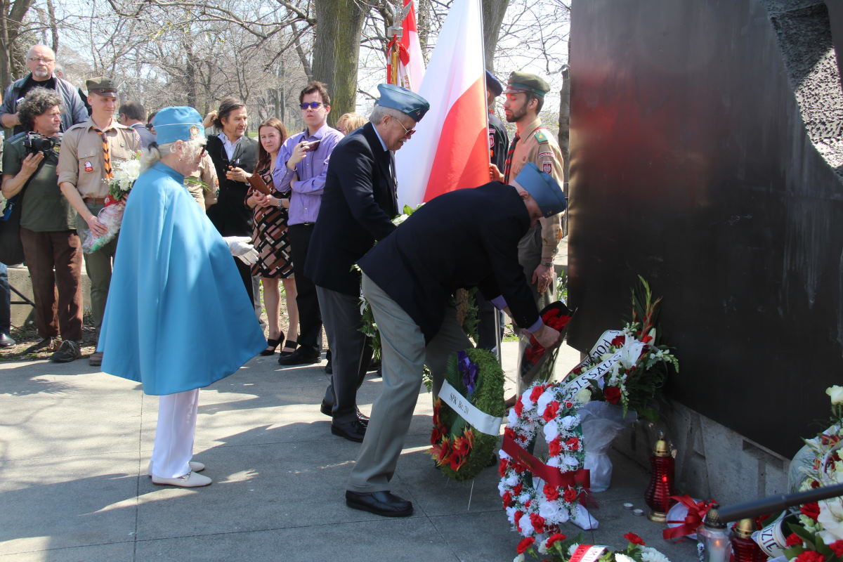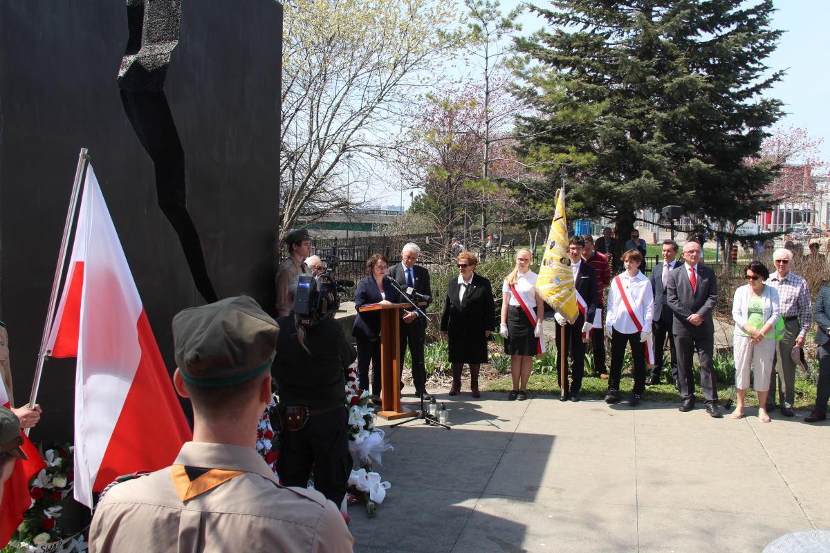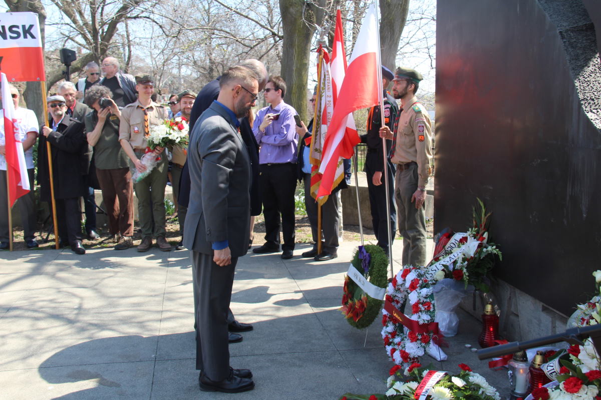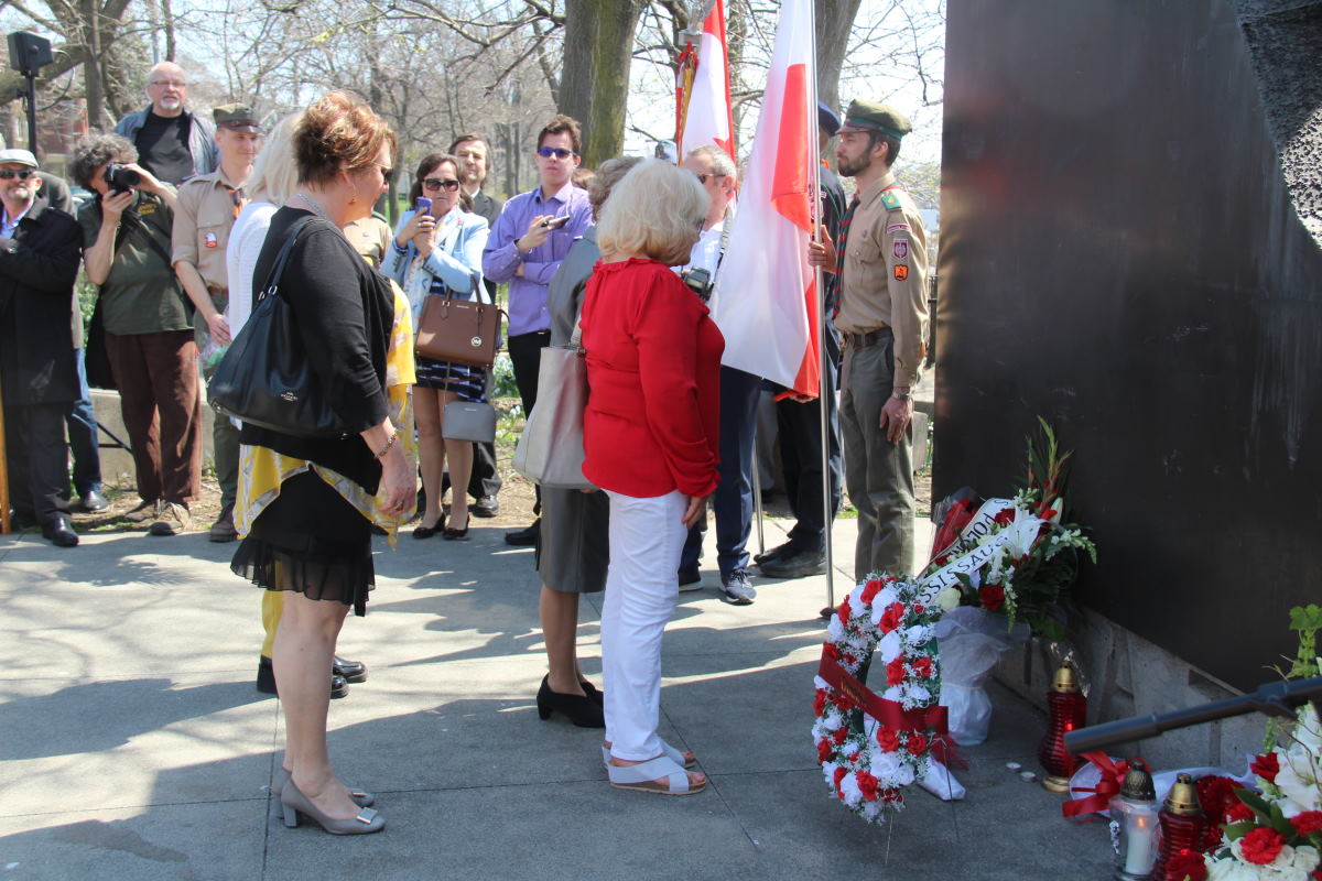 Po Mszy Św. o godz.13:00 u stóp pomnika Katyńskiego odbyły się oficjalne uroczystości, z udziałem przedstawicieli organizacji polonijnych.