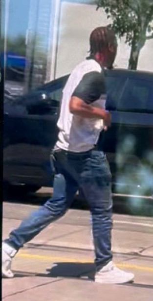 Drugi podejrzany to mężczyzna w wieku od 18 do 25 lat, średniego wzrostu, szczupłej budowy, z długimi włosami związanymi w kucyk. Miał na sobie czarną czapkę baseballową, czarną bluzę z kapturem North Face, ciemne dżinsy i białe buty.