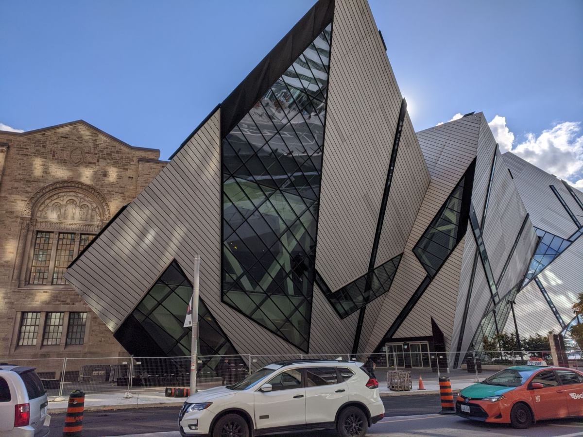 Po krótkiej wizycie w kafeterii muzealnej udajemy się do domu, oglądając jeszcze budynek ROM od zewnątrz. Sam gmach to połączenie historycznej siedziby ROM z Kryształem wkomponowanym w oryginalny budynek ( projekt Daniela Libeskinda ).Jest to koncepcja podobna do unowocześnienia Muzeum Louvre w Paryżu przez szklaną piramidę umieszczoną na jego froncie.