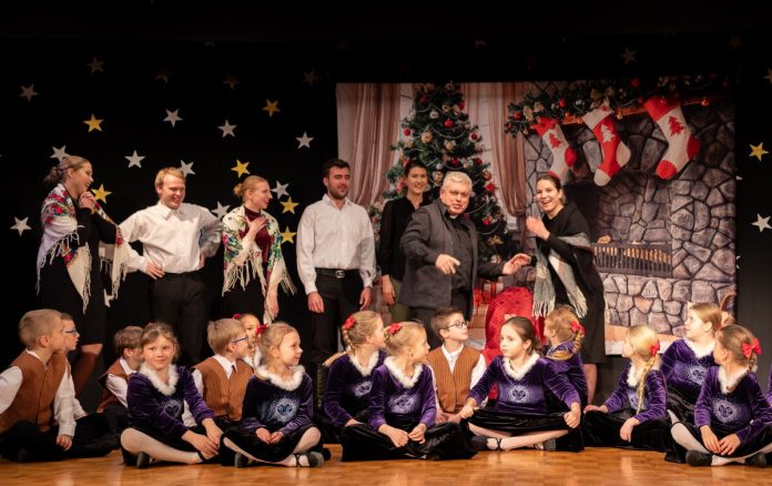 Koncert dowcipnie i ze swadą poprowadził znany konferansjer i gawędziarz Henryk Gadomski, który w dodatku brawurowo zagrał rolę gospodarza balu maskowego wieńczącego spektakl. Obecnie ZPiT Radość-Joy liczy 120 dzieci i młodzieży. Od kilku lat istnieje też grupa rodziców funkcjonująca pod nazwą “Sokoły”. Koncert świąteczny jest jedną z nielicznych okazji kiedy na scenicznych deskach cały zespół od najmłodszych 4 latków do najstarszych, których już nawet nie wypada pytać o wiek bawi publiczność. Występ rozpoczął się od pięknych polskich pastorałek i wizyty tradycyjnych kolędników. Gościnnie pojawił się o.Bogdan Osiecki proboszcz parafii św. Maksymiliana Kolbe, który wykonał utwór z repertuaru zespołu Gang Marcela “Kiedyś to były święta”. W kolejnym akcie zespół pokazał jak szeroki wachlarz repertuarowy posiada. Publiczność usłyszała piosenki takie jak “Z kopyta kulig rwie” Skaldów, “Gwiazda na kiju” Czerwonych Gitar, “Pastorałka od serca do ucha” Rokiczanki oraz podziwiała tańce ludowe i stylizowane. Na koniec, Grand Finale – Maskarada. Barwny korowód w maskach, prowadzony przez błazna przetoczył się przez widownię by ostatecznie zawitać na scenie. Tu Bal Maskowy nabrał tempa i kolorytu poprzez stroje i tańce. Na początek był dostojny Polonez, a potem szybkie i efektowne Kadryl, Mazur czy Polka Romany.