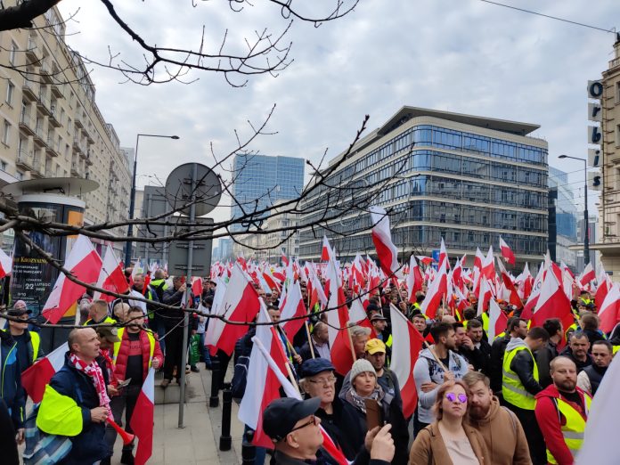 Protest rozpoczął się ok. 11 na placu Defilad przed Pałacem Kultury i Nauki. Stamtąd rolnicy przemaszerowali przed siedzibę Prezesa Rady Ministrów. „Jesteśmy jak wojsko. W końcu chłopi zrozumieli, że mamy w tym kraju władzę” – mówią protestujący. Domagają się zniesienia przepisów Zielonego Ładu oraz uszczelnienia granic przed napływem produktów rolno-spożywczych spoza UE.