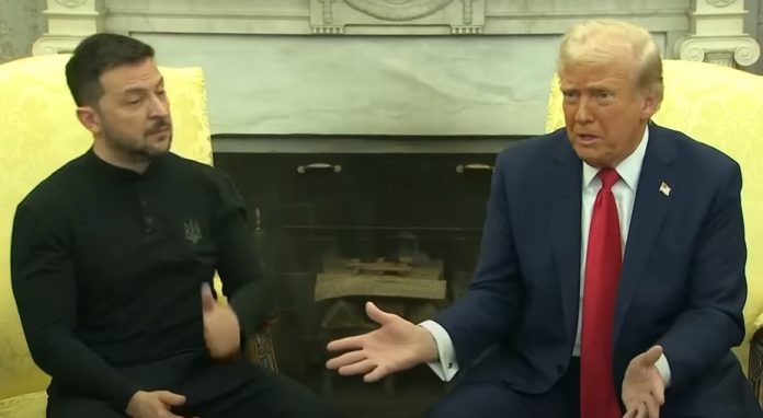 Trump po dłuższej wymianie zdań stwierdził, że Żeleński nie chce mówić o pokoju, ale chce Amerykę naciągać dalej na finansowanie wojny. Dodał, że Żeleński nie będzie chciał przerwania wojny dopóki będzie miał poparcie USA. Trump nie jest tym zainteresowany, jest zainteresowany zakończeniem wojny. Trump powiedział, że Żeleński nie uszanował majestatu ukochanego przez Amerykanów Oval Office i jego konfrontacyjna postawa grozi wywołaniem III wojny światowej. Po tym zakończono spotkanie i Trump skasował wspólną konferencję prasową mówiąc, że Żeleński jak będzie chciał zakończenia wojny to w każdej chwili może wrócić na rozmowy. Po czym Trump udał się do swojej posiadłości na Florydzie, a przygotowany dla gości lunch zjedli asystenci. Sekretarz stanu Marco Rubio skasował wart kilkaset milionów dolarów projekt odbudowy sieci energetycznej Ukrainy…