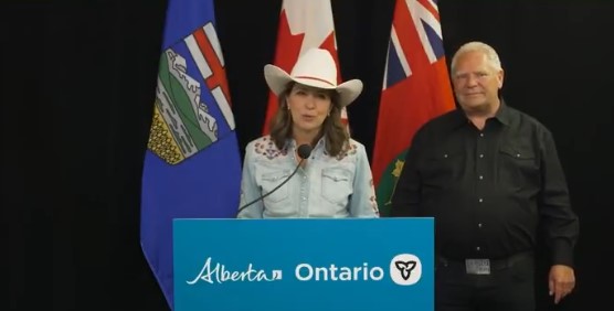 Premierzy podpisali dwa memoranda o porozumieniu (MOU) na konferencji prasowej podczas wizyty premiera Ontario Douga Forda na Calgary Stampede. Pierwsze porozumienie koncentruje się na rozwoju infrastruktury, takiej jak rurociągi i linie kolejowe dla ropy, gazu i kluczowych minerałów z Alberty i Ontario, aby mogły trafić na rynki globalne.