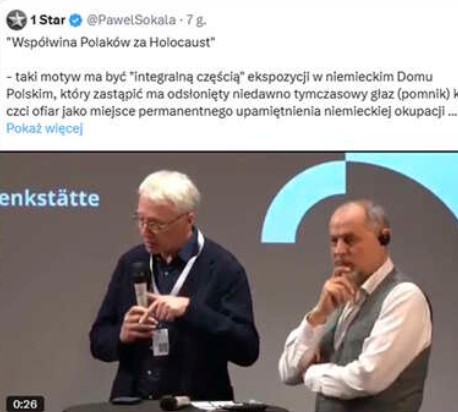 Skandaliczna ekspozycja w Domu Polskim w Berlinie ma zaakcentować kwestię rzekomej „współwiny Polaków za Holocaust”. Wszystko poprzedziło wystąpienie Petera Olivera Loewa z Deutsches Polen Institut w Darmstadt, który w tym właśnie duchu sugerował rzekome współsprawstwo Polaków w masowej eksterminacji Żydów podczas okupacji niemieckiej w Polsce. Żeby było jeszcze bardziej szokująco, wystąpieniu temu z uwagą i jakby zrozumieniem przyglądał się… dyrektor Muzeum II Wojny Światowej w Gdańsku prof. Rafał Wnuk. – czytamy na portalu wpolityce.pl