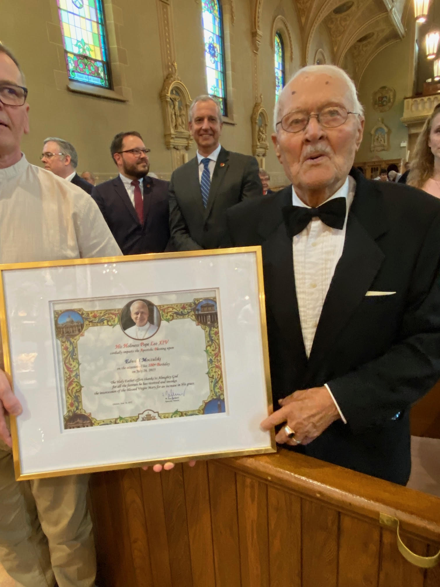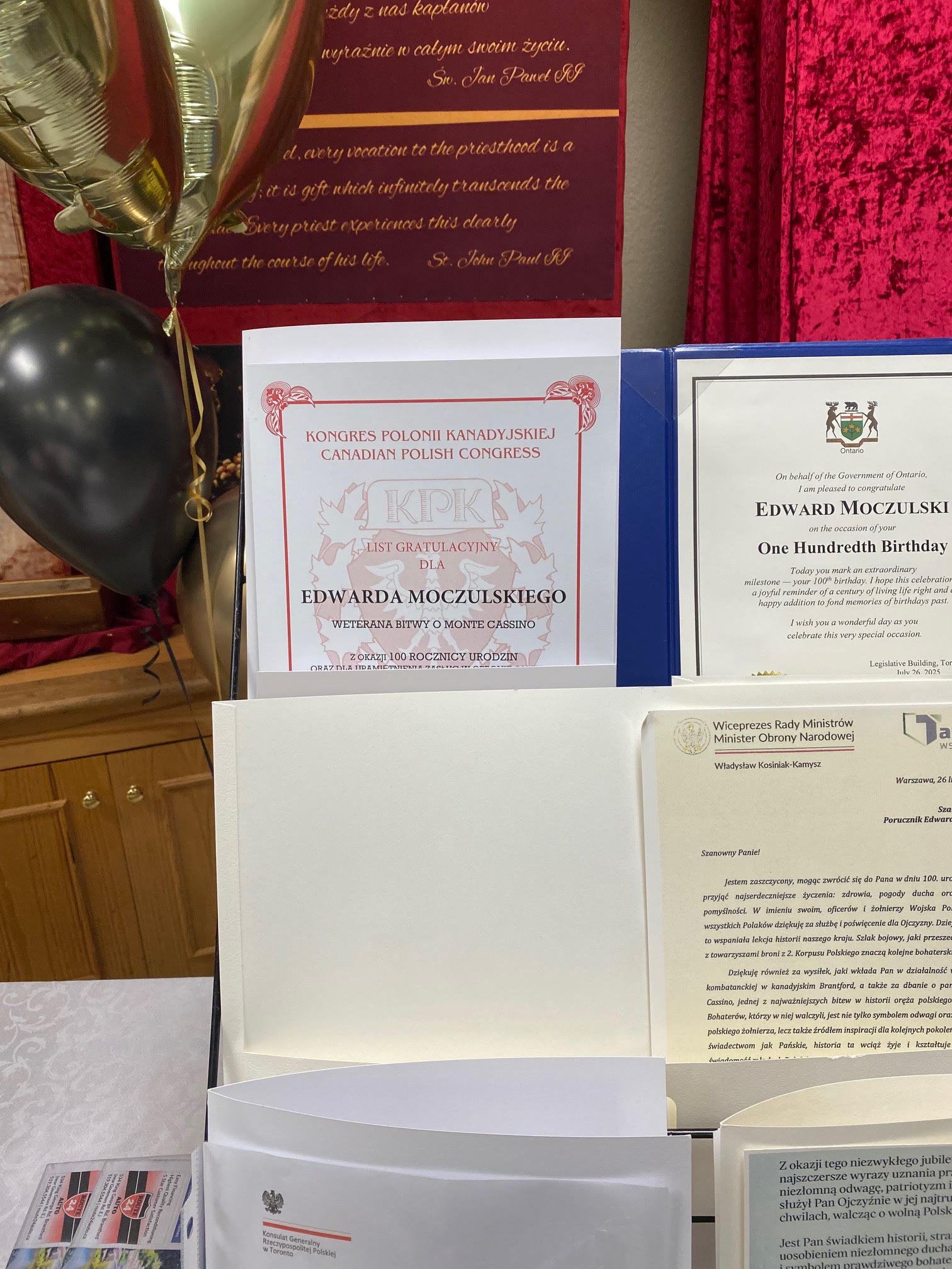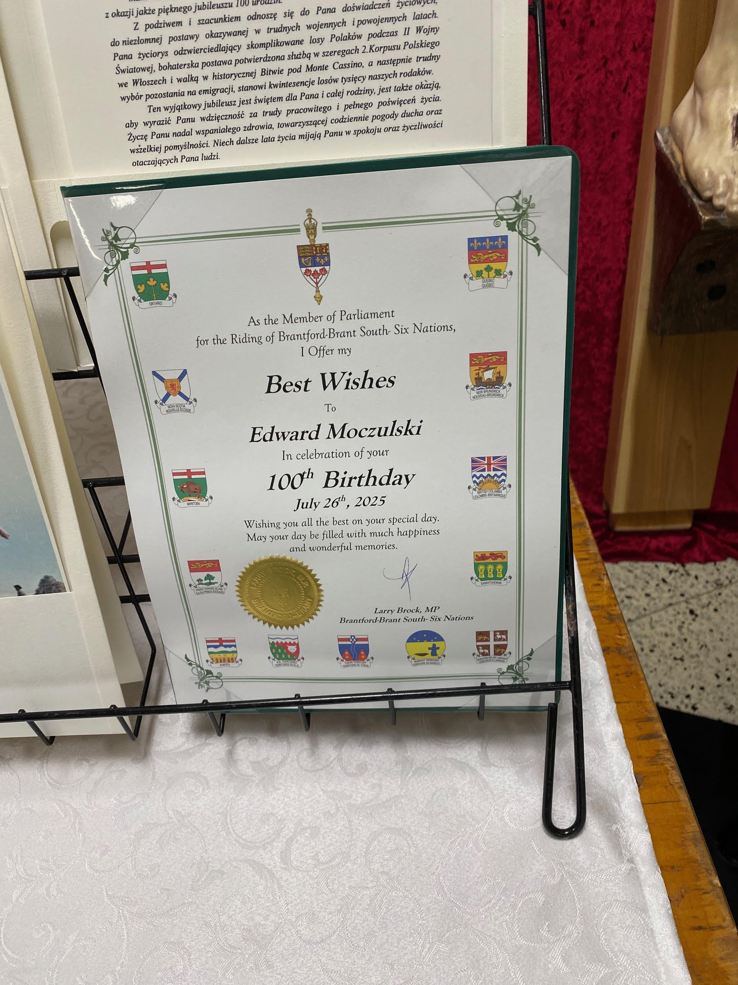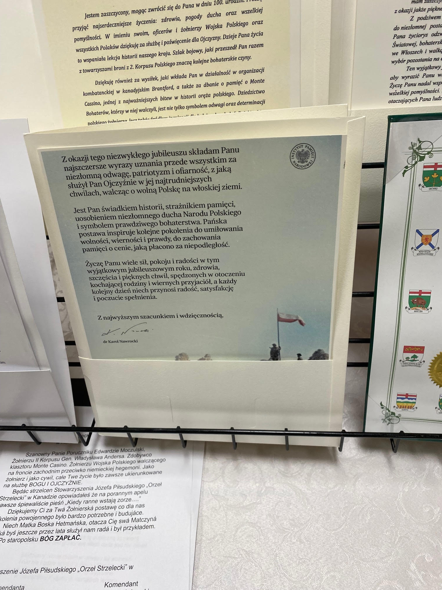 Pan Porucznik 27 lipca w Kitchener w Kościele p/w Przenajświętszego Serca Pana Jezusa. Jubilat otrzymał podziękowania za niezłomną postawę patriotyczną i katolicką. Podziękowania i dyplomy Pan otrzymał od Papieża Leona XIV, SPK, KPK, ZPwK, ZNP, harcerzy, SJP “Orzeł Strzelecki “ w Kanadzie i osób prywatnych. To było bardzo duchowe spotkanie z żywą historią.